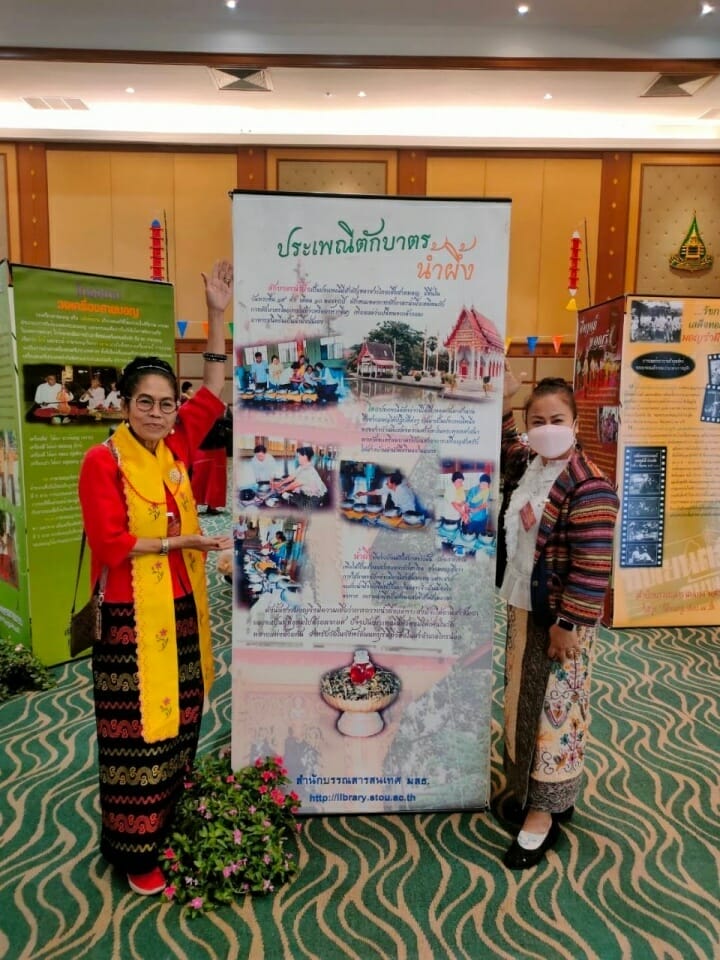 สำนักบรรณสารสนเทศ จัดกิจกรรมเผยแพร่สารสนเทศท้องถิ่นนนทบุรีศึกษา งาน ทัศนารามัญ@มสธ. วันพุธที่ 7 กันยายน 2565 ณ ห้องพระปกเกล้า อาคารอเนกนิทัศน์ มหาวิทยาลัยสุโขทัยธรรมาธิราช เพื่อเผยแพร่ผลผลิตของโครงการศูนย์การเรียนรู้เพื่อชุมชนพหุปัญญา ประจำปีงบประมาณ พ.ศ. 2565 โดยมี ศาสตราจารย์ ดร.วิจิตร ศรีสอ้าน นายกสภามหาวิทยาลัยสุโขทัยธรรมาธิราช เป็นประธานในพิธีเปิด และมีรองศาสตราจารย์ ดร.ปราณี สังขะตะวรรธน์ กรรมการสภามหาวิทยาลัยผู้ทรงคุณวุฒิด้านการศึกษาทางไกล กล่าวปิดงาน กิจกรรมในงาน ประกอบด้วย การเล่าเรื่องหนังสือ วิถีมอญในไทย พินิจหัตถศิลป์มอญ และเครื่องปั้นดินเผาเกาะเกร็ด โดย นายพิศาล บุญผูก ผู้เขียนเนื้อหาหนังสือ และนางวรนุช สุนทรวินิต บรรณาธิการหนังสือทั้ง 3 เล่ม การสาธิตการรำมอญรำ การสาธิตการเล่นทะแยมอญ และฐานความรู้ต่างๆ ที่จัดแสดงให้ความรู้ ประกอบด้วย