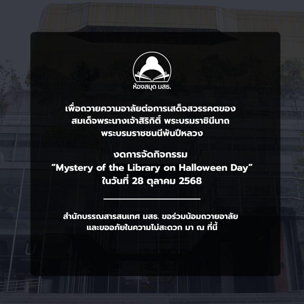 ของดการจัดกิจกรรม “Mystery of the Library on Halloween Day” ในวันที่ 28 ตุลาคม 2568