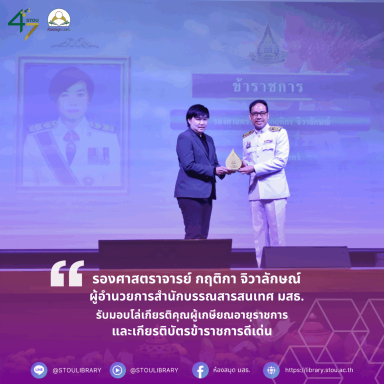 ข่าวประชาสัมพันธ์ ผู้อำนวยการสำนักบรรณสารสนเทศ มสธ. รับมอบโล่เกียรติคุณผู้เกษียณอายุราชการ และเกียรติบัตรข้าราชการดีเด่น มหาวิทยาลัยสุโขทัยธรรมาธิราช ประจำปี 2568