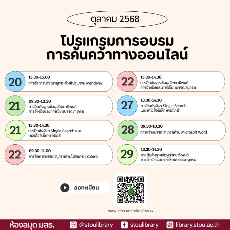 ข่าวประชาสัมพันธ์ ขอเชิญร่วมงานเปิดห้องสมุดและศูนย์หนังสือ มสธ. “STOU Library & Book Center Open House 2025”