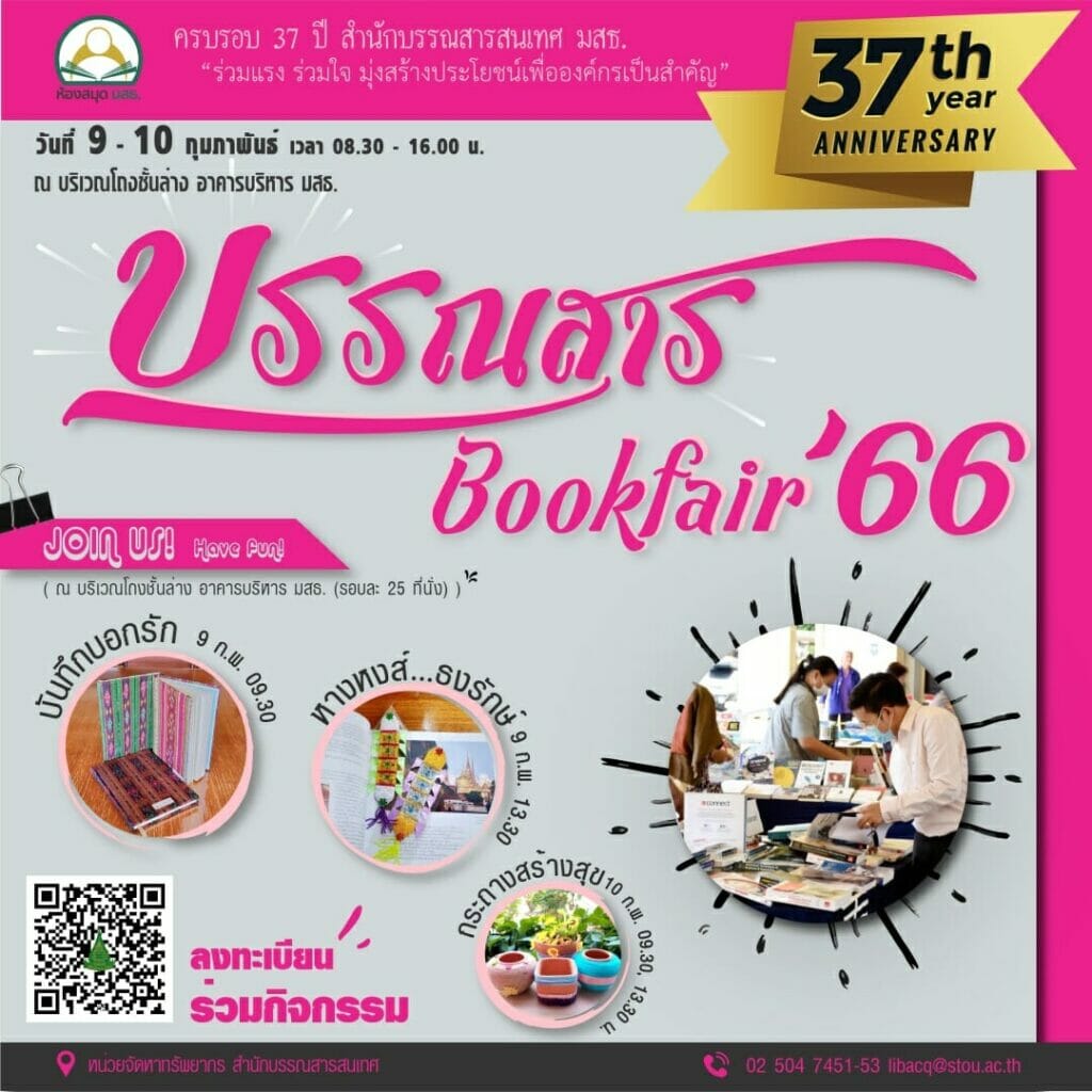 ขอเชิญคณาจารย์และบุคลากรของมหาวิทยาลัยร่วมคัดเลือกหนังสือเข้าห้องสมุดใน กิจกรรมบรรณสาร Book Fair’ 66 เนื่องในโอกาสครบรอบ 37 ปี การจัดตั้งสำนักบรรณสารสนเทศ ระหว่างวันที่ 9-10 กุมภาพันธ์ 2566 ณ บริเวณโถงชั้นล่าง อาคารบริหาร เวลา 8.30 – 16.00 น. นอกจากกิจกรรมคัดเลือกหนังสือแล้ว ยังพบกับกิจกรรมประกอบงานมากมาย ได้แก่ กิจกรรม DIY รับของประดิษฐ์ที่ทำด้วยตนเองกลับบ้าน ฟรี นอกจากนี้ ยังมีกิจกรรมหยิบฟรีมีให้อ่าน ที่สามารถเลือกหนังสือ/นิตยสาร หลากหลายแนวกลับไปอ่านได้ ที่บริเวณด้านหน้าห้องสมุด อาคารบรรณสาร ชั้น 1 และร่วมสนุกกับกิจกรรม “ร่มหรรษา พาลุ้นโชค” ลุ้นรับของรางวัล ตลอดงาน ที่บริเวณจุดลงทะเบียน