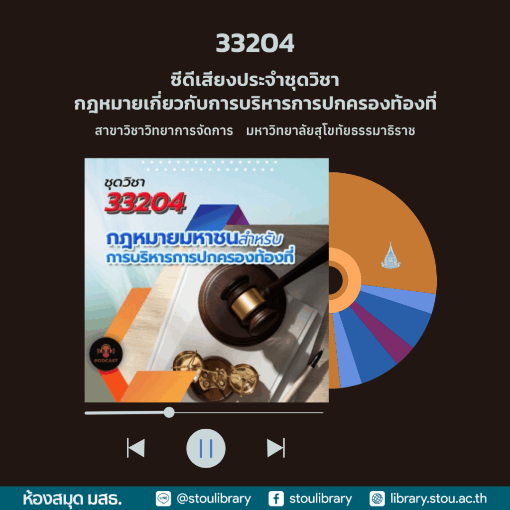 ซีดีเสียง [sound recording] ประจำชุดวิชา 33204 กฎหมายเกี่ยวกับการบริหารการปกครองท้องที่ Local administrative law สาขาวิชาวิทยาการจัดการ มหาวิทยาลัยสุโขทัยธรรมาธิราช ให้ความรู้ครอบคลุมเนื้อหาทั้งหมด 15 หน่วย ดังนี้