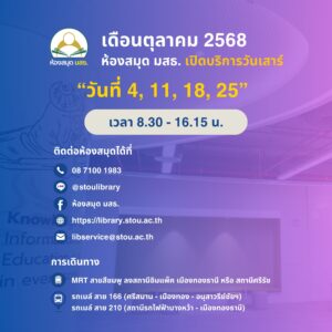 ห้องสมุด มสธ. เปิดบริการวันเสาร์ เดือนตุลาคม 2568